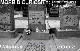 ![]() ![]() Book: Morbid Curiosity: Tombstones Across America | Calendar: Morbid Curiosity 2002 Calendar
